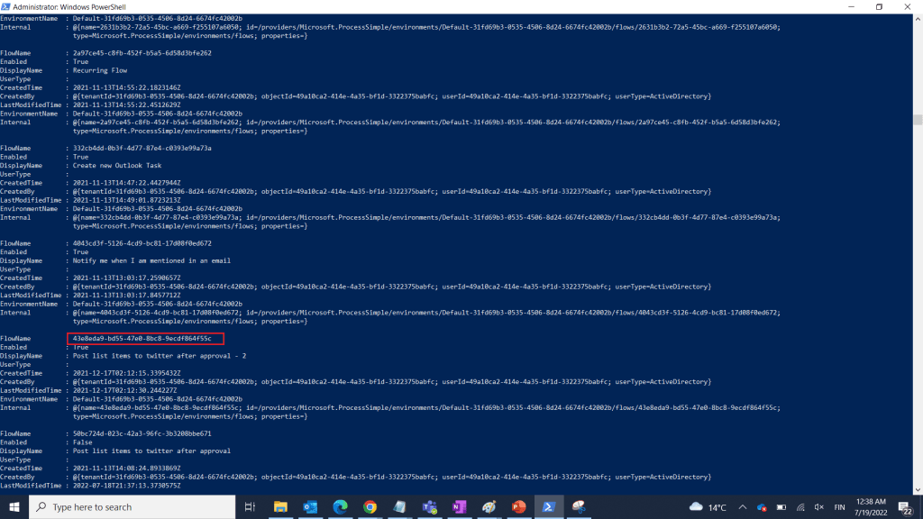 Get-AdminFlow -EnvironmentName Default-31fd69b3-0535-4506-8d24-6674fc42002b -IncludeDeleted $true
