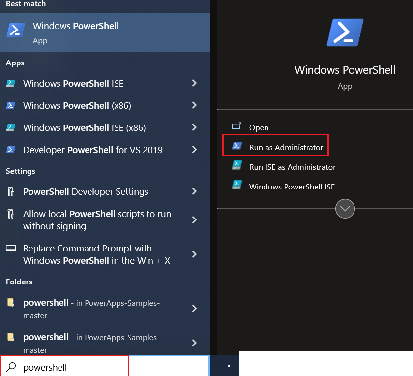 - Search for PowerShell in your machine & “Run as Administrator”
